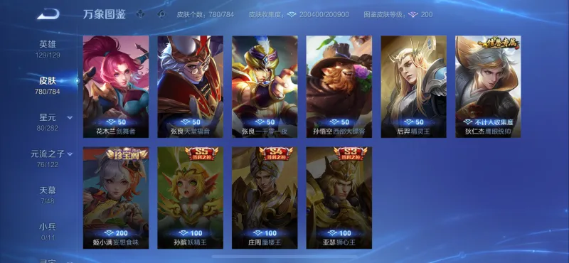 780皮,差1珍宝阁+3赛季皮。