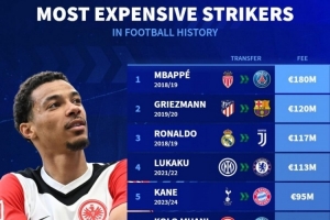 足坛历史前锋转会费排名: